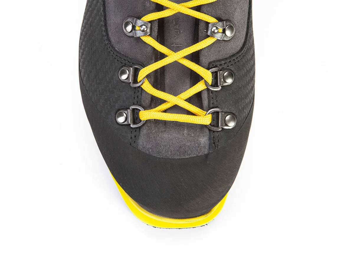رویه جیر ساخته شده از یک تکه چرم تا شده برای داشتن یک زبانه کفش بدون درز. تقویتکننده کربن ضد ساینده روی چرم. سیستم عایق حرارتی و خشک کردن سریع آستر در Primaloft®، همراه با غشای ضد آب. 5 نوع قلاب مختلف باعث می شود توری کشویی و قفل بهتری ایجاد شود. کفی نایلونی 7 میلی متری و زیره دوگانه EVA برای پایداری بیشتر. زیره با چسبندگی عالی در هر نوع زمین.